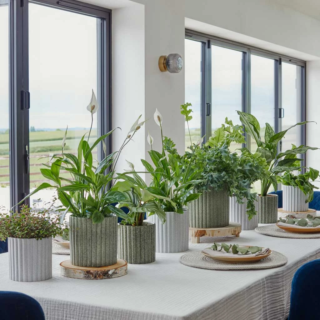 This simple yet elegant cylindrical ceramic plant pot is the perfect way to add a touch of understated style to your home decor. The vertical ridges add shadow and texture, while the light grey speckled with dark grey glaze gives the pot a modern look and texture that will complement your favourite houseplants.