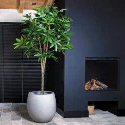 The Grigio modern planter is a stylish and clean look for both indoor and outdoor spaces. Its bold black faux-concrete surface and barrel style cylindrical shape add texture and minimalist flair. This planter is perfect for contemporary interiors and outdoor seating areas.