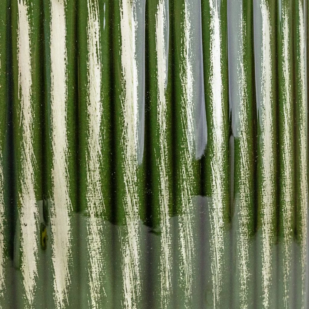Dressed in a distressed sage green glaze revealing brushed white and red tones beneath, Nella radiates warmth and sophistication. A modern metal masterpiece with vertical ribbing and a stylishly stepped-in base, each one is made, coloured and distressed by hand to create subtle unique differences in colour and tone.