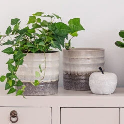 Gia Rippled Plant Pot – Stone Granite Dip