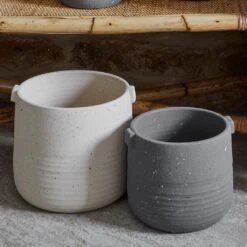 Azalea Ribbed Plant Pot – Speckled Grey Stone