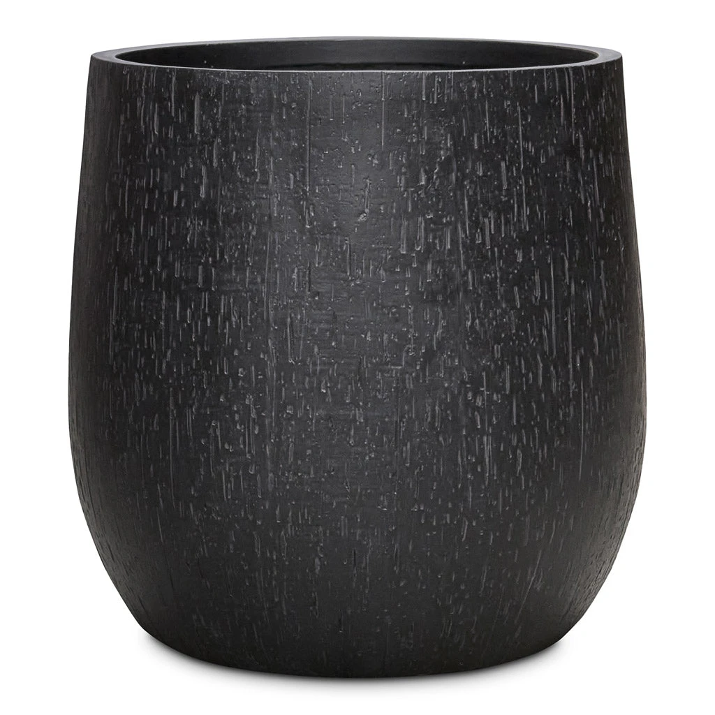 The plump curved design is made from fiberclay, a combination of clay applied to a fibreglass structure for a durable, lightweight planter with UV and frost protection.