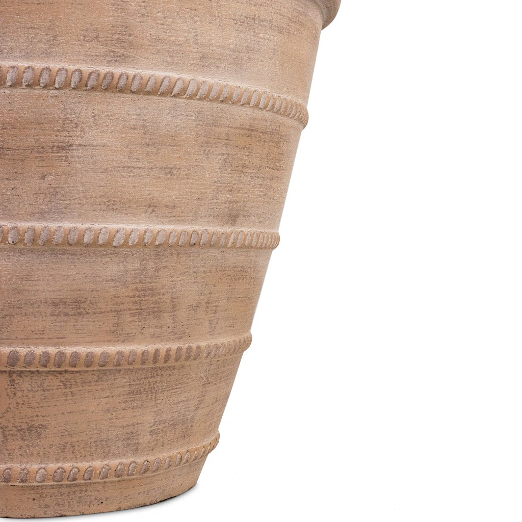 Transform your space with Selena: the embodiment of timeless Mediterranean elegance. This tapered pot boasts raised rope detailing and a weathered terracotta style, offering classical allure for plant displays in any space.